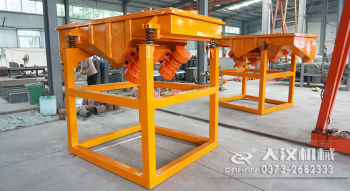 1224型直线振动筛为特殊定做,1200mm(宽)×2400mm(长)整机为碳钢材质,根据客户需求将直线振动筛底座加高。